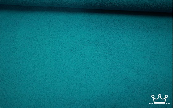 Deze mooie zachte badstof petrol is dubbel gelust en dus aan 2 kanten bruikbaar. De badstof is gemaakt van 100% katoen.