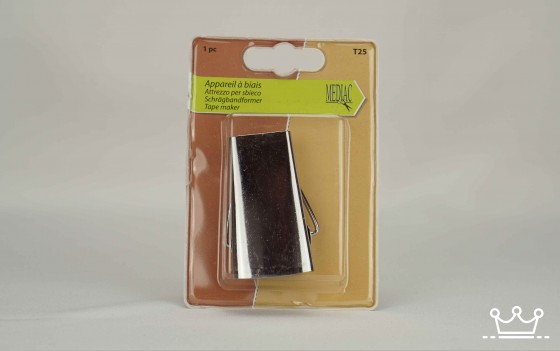 De maat van de biaisband maker is 25 mm. Dit is de maat van het biasband als het klaar is.