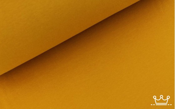 Boordstof Oker Geel is gemaakt van 92% katoen en 8% elasthaan. Boordstof is een rond gebreide stof. Hiermee wordt bedoelt dat de stof aan de zijkanten niet los van elkaar zijn maar in een geheel aan elkaar geweven zijn. Boordstof heeft een stevige elastisiteit. Onze boordstof is een mooie gladde en fijne kwaliteit.