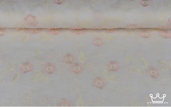 Cotton embroidery flowers white, creme, pink