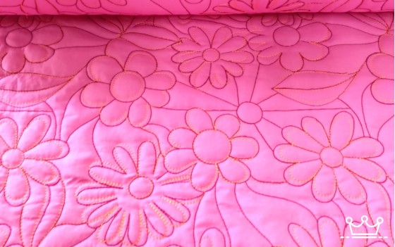 Doorgestikte stof cotton steppedflowers pink is een mooie gewatteerde stof gemaakt van 70% katoen 30% polyester.