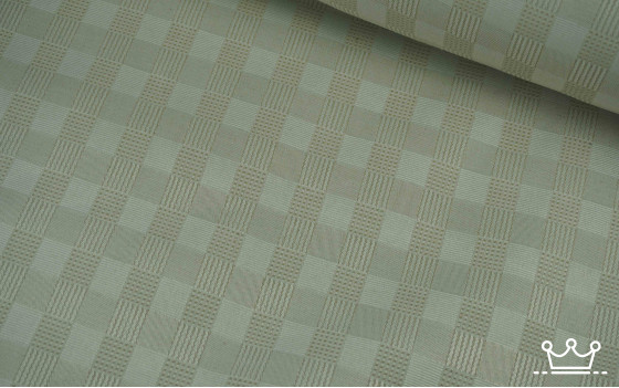 Damast dado zilver met taupe ruit is gemaakt van 65% Polyester en 35% Katoen.
