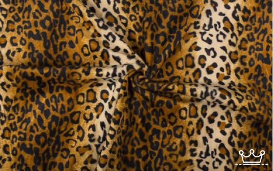Dierenprint panter geel is een mooie kwaliteit Velboa. Het is een kortharige velours/nep bont. Het is dus een harige stof met een luxe uitstraling. Deze stof is gemaakt van 100% polyester en wordt machinaal gemaakt. Deze stof wordt speciaal gebruikt voor het maken van: kleding, kussens, decoratief of als bekleding voor bijvoorbeeld een hondenmand. Ook bij het theater of bij de carnaval zien we deze stof regelmatig terug.