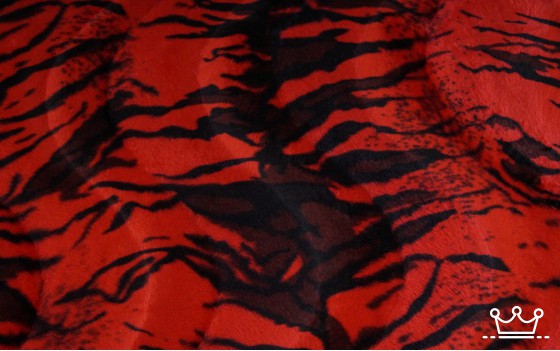 Dierenprint tijger rood is een mooie kwaliteit Velboa. Het is een kortharige velours/nep bont. Het is dus een harige stof met een luxe uitstraling. Deze stof is gemaakt van 100% polyester en wordt machinaal gemaakt. Deze dierenprint velboa tijger heeft de kleuren:groen bruin en zwart.