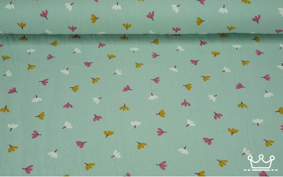 Dipinto katoen bloem vintage tulp mint is een 100% katoenen stof die absorberend is. Dipinto katoenen stof wordt voornamelijk gebruikt voor het naaien van slabben, spuugdoekjes, handdoeken, maar ook voor luiers.