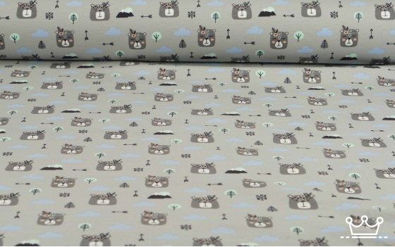 Deze French terry interlock tricot Hippie beer grijs is gemaakt van 95% katoen en 5% Lycra. Het is een soepel vallende en elastische stof.