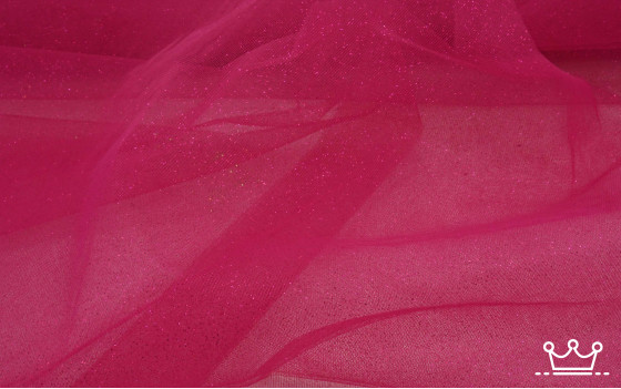 Glitter tule fuchsia roze is een stugge polyester stof met gaatjes wat hem doorschijnend maakt.