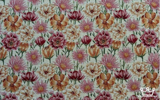 De gobelin bloemen paradijs beige is gemaakt van 50% polyester met 50% katoen.
