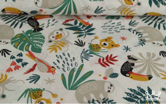 Deze katoen jungle dieren wit is gemaakt van 100% katoen.