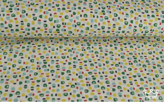 Kinder katoen Katoen kleine figuurtjes groen, licht blauw, oranje.