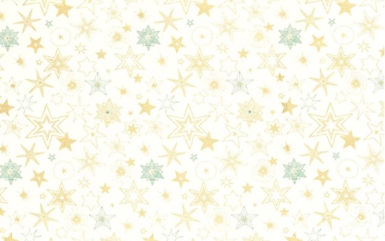 Kerst stoffen Kerst katoen wit met sterren goud en groen