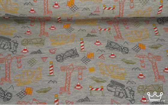 Kinder tricot bedrukt Kinder tricot bouwverkeer grijs gemelleerd