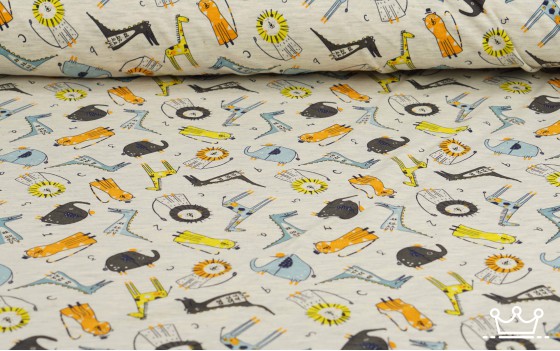 Kinder tricot bedrukt Kinder tricot Little zoo licht grijs
