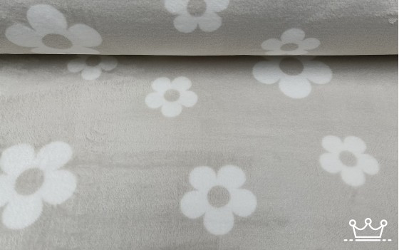 Knuffelfleece beige met madelief wit