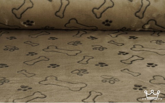 Knuffelfleece beige met pootje en kluif is een mooie kwaliteit knuffelfleece in het ecru met een honden poot en kluif.