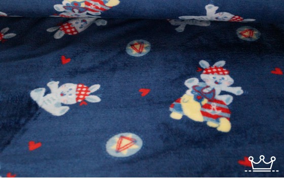 Knuffelfleece blauw met karate konijn is een mooie kwaliteit knuffelfleece.