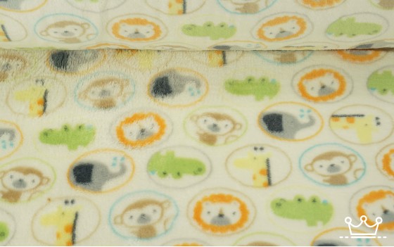 Knuffelfleece creme met dieren in rondjes is een mooie kwaliteit fleece die heerlijk zacht en warm is!