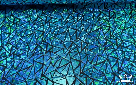 Lamee driehoeken aqua is een stof met een mooie glans die in de breedte licht rekbaar is. Lamee stof is gemaakt van 95% polyester en 5% elasthaan.