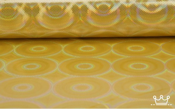 Lamee lycra hologram geel is een stof met glitters en een hologram motief die in de breedte rekbaar is. Lamee lycra hologram is gemaakt van 82% Polyamide 18% Spandex