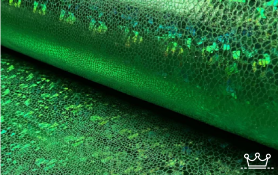Lamee schub groen is een stof met een mooie glans en schub motief die in de breedte rekbaar is. Lamee stof is gemaakt van 95% polyester en 5% spandex.