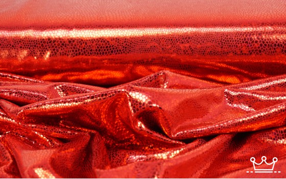Lamee schub rood is een stof met een mooie glans en schub motief die in de breedte rekbaar is. Lamee stof is gemaakt van 95% polyester en 5% spandex.