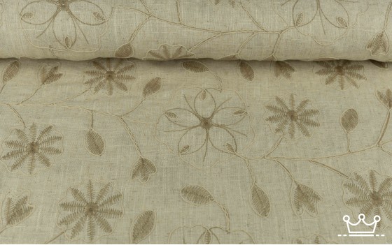 Linnen viscose embroidery is gemaakt van 70% Viscose en 30% Linnen.