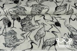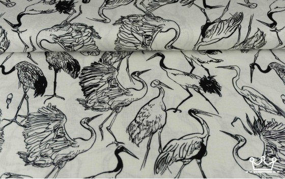 Linnen viscose vogels wit zwart