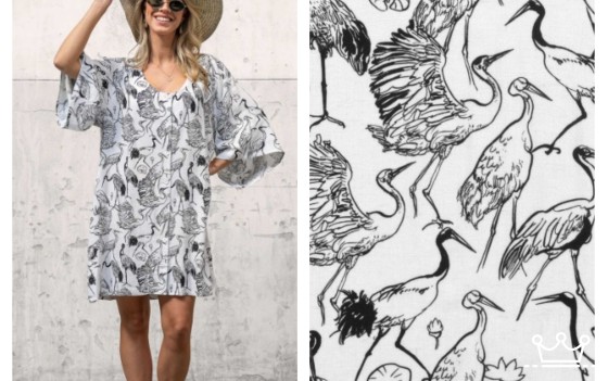 Nieuwe collectie voorjaar 2026 Linnen viscose vogels wit zwart