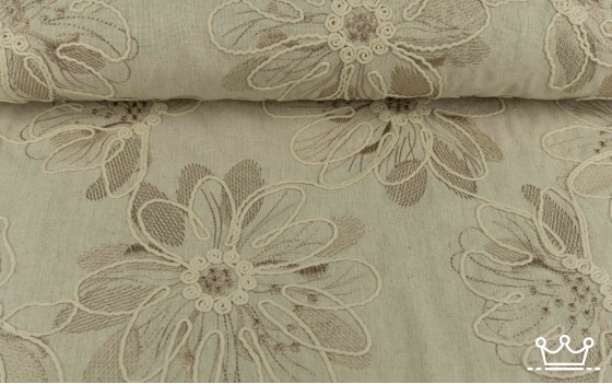 Deze luxe embroidery is gemaakt van 55% Viscose 30% Linnen en 15% Polyamide.
