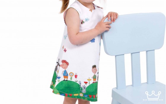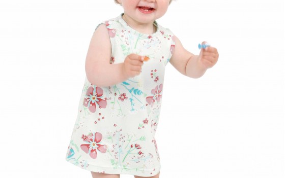 Dit schattige jurkje is van tricotstof gemaakt en valt daarom erg soepel. Het is eenvoudig te maken. Op een warme stranddag ziet uw kindje er heerlijk zomers uit. Door (druk)knoopjes op de beide schouders trekt u het jurkje gemakkelijk over baby’s hoofdje.