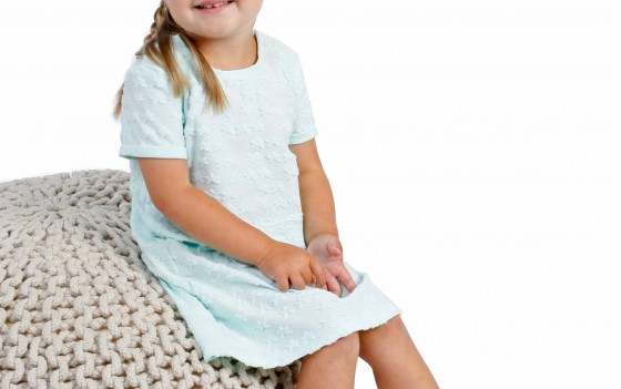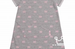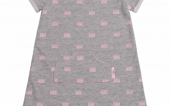 De kangoeroezak op de voorkant geeft het geheel een sportieve look. De jurk gaat door de drukknoopjes op de schouder gemakkelijk over uw kindjes hoofdje.
