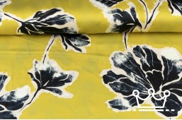 Deze polyester satijn duchesse bloemen geel is gemaakt van 100% Polyester.