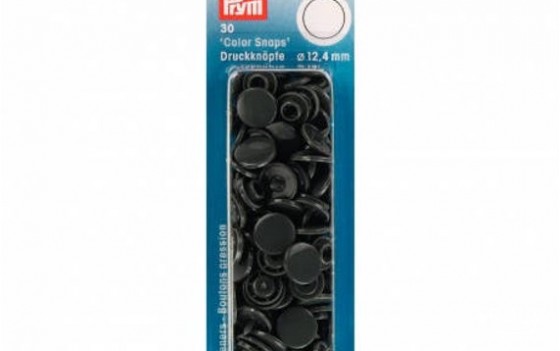 Prym Color Snaps drukknopen dark grey 939 109 zijn kunststof drukknopen. In één doosje zitten 30 kunststof drukknopen van een grootte van 12.4mm.