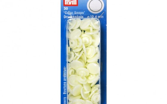 Prym Color Snaps drukknopen pearl 939 122 zijn kunststof drukknopen. In één doosje zitten 30 kunststof drukknopen van een grootte van 12.4mm.