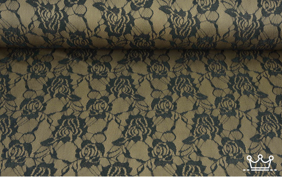 Deze Punta Roma met kanten bloemen is gemaakt van 60% Polyester 35% Viscose en 15% Elasthaan.