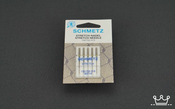 De Schmetz stretch naalden zijn speciaal ontworpen voor gebruik met zeer elastische stoffen. Elke naald heeft een medium ball-point punt en een speciaal ontworpen oog en uitholling om het overslaan van steken te voorkomen. Elke verpakking bevat 5 naalden.