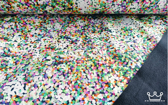 Softshell confetti is gemaakt van 100% polyester. Sofshell is ademend maar toch winddicht en tevens waterafstotend.