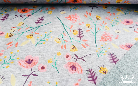 Softshell getekend bloemen grijs is gemaakt van 100% polyester. Sofshell is ademend maar toch winddicht en tevens waterafstotend.