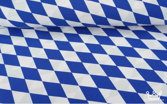 Terlenka bayern ruit blauw wit is een mooie kwaliteit stof van 100% Polyester. Het is een soepel vallende en kreukvrije kleurvaste stof die voor vele doeleinde gebruikt wordt waaronder veel als carnavalsstof.