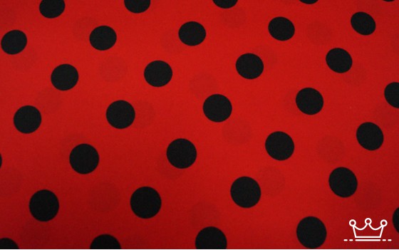 Terlenka rood met stip zwart groot is een mooie kwaliteit stof van 100% Polyester. Het is een soepel vallende en kreukvrije kleurvaste stof die voor vele doeleinde gebruikt wordt.