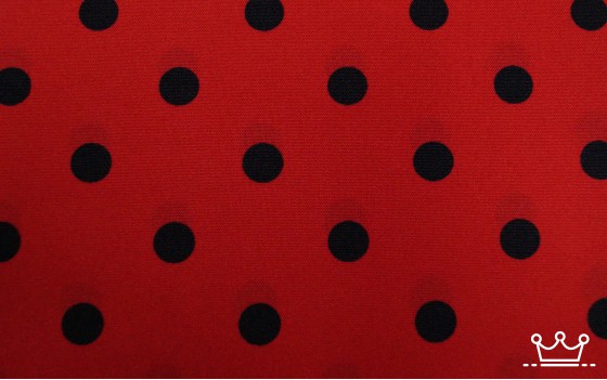 Terlenka rood met stip zwart middel is een mooie kwaliteit stof van 100% Polyester. Het is een soepel vallende en kreukvrije kleurvaste stof die voor vele doeleinde gebruikt wordt.