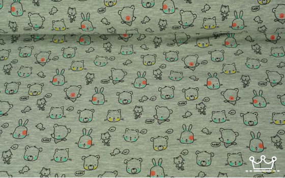 Kinder tricot bedrukt Tricot sweet baby animals dark grey melange