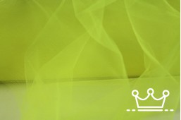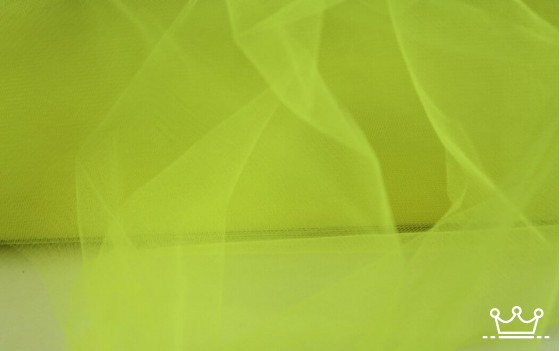 Tule fluor geel is een stugge polyester stof met gaatjes wat hem doorschijnend maakt.