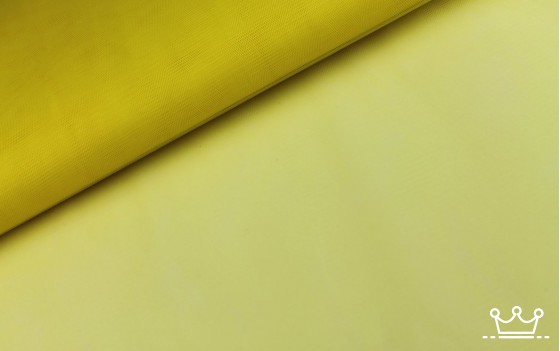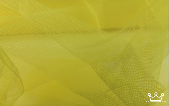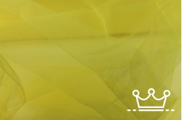 Tule geel is een stugge polyester stof met gaatjes wat hem doorschijnend maakt.