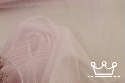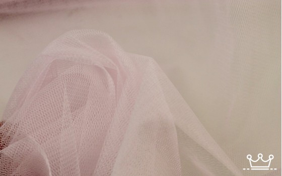 Tule licht roze is een stugge polyester stof met gaatjes wat hem doorschijnend maakt.