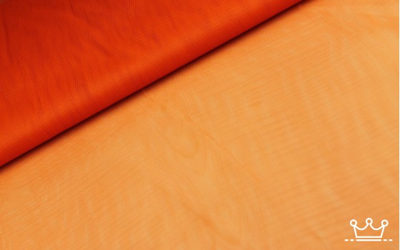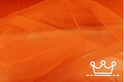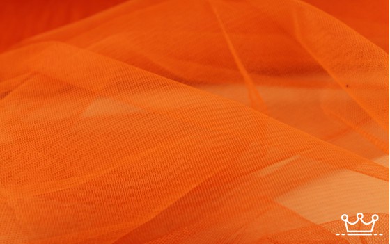 Tule oranje is een stugge polyester stof met gaatjes wat hem doorschijnend maakt.