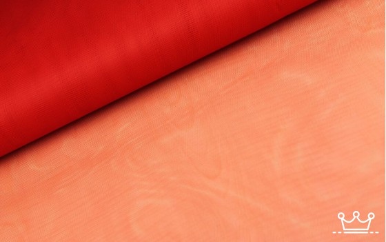Tule rood is een stugge polyester stof met gaatjes wat hem doorschijnend maakt.