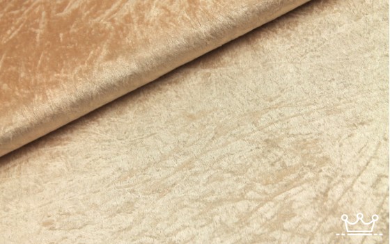 Velours de panne champagne is een mooie kwaliteit stof van 100%polyester. Velours de panne is een rekbare soepel vallende, kreukvrije en kleurvaste stof met vleug en een glans.
