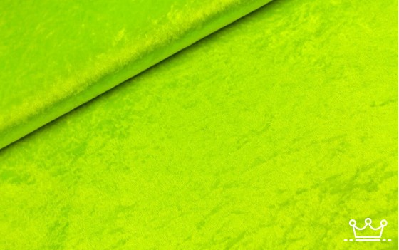 Velours de panne fluor geel is een mooie kwaliteit stof van 100%polyester. Velours de panne is een rekbare soepel vallende, kreukvrije en kleurvaste stof met vleug en een glans.