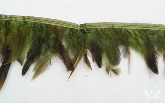 Verenband is een bijzonder product met kleine en grote veertjes vastgezet op een satijn band. Deze band is bij de langste veren ongeveer 15cm lang, doordat er verschillende lengtes veren zijn verschilt dit per stuk.